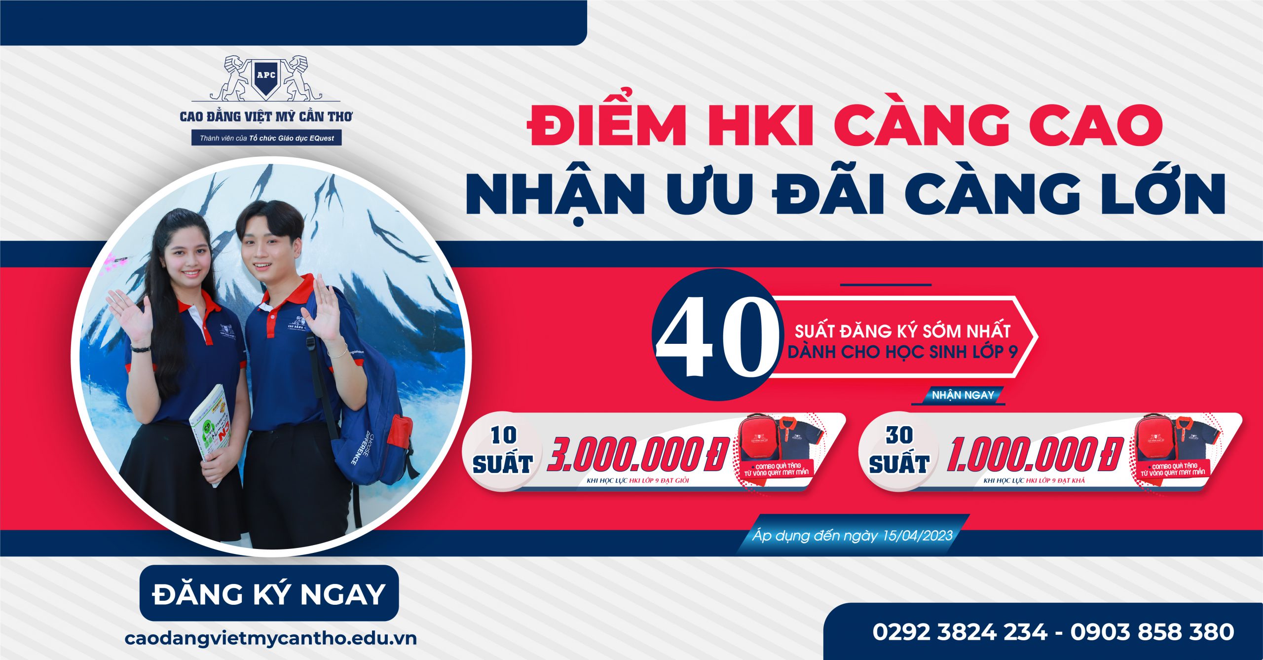 Ghi danh hôm nay để trở thành 1 trong 60 hồ sơ sớm nhất nhận ưu đãi trị giá 7tr đồng, dành riêng cho học sinh lớp 9 tại Cần Thơ và các tỉnh miền Tây. Đăng ký ghi danh sớm tại Cao đẳng Việt Mỹ Cần Thơ Chỉ với 1 bước đơng giản, học […]